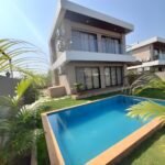 The villa features two air-conditioned bedrooms, a living area for group seating, and outdoor space where guests can relax and enjoy the fresh air. The highlight of the property is the private swimming pool, offering a refreshing place to unwind with family or friends.