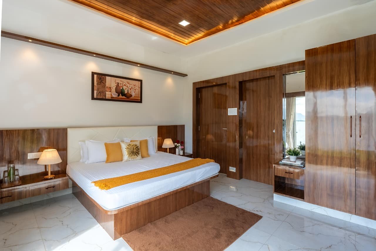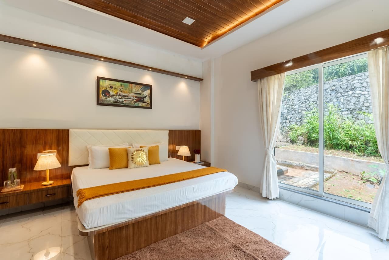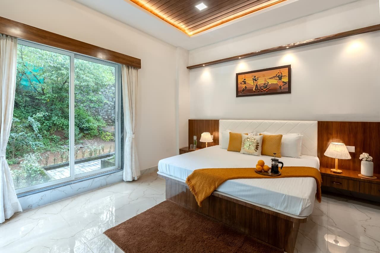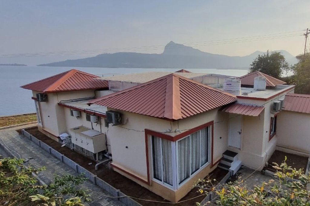 This thoughtfully designed 4BHK villa in pawna with turf and lake view features all four bedrooms conveniently located on the ground floor, making it especially comfortable for families with seniors and children.