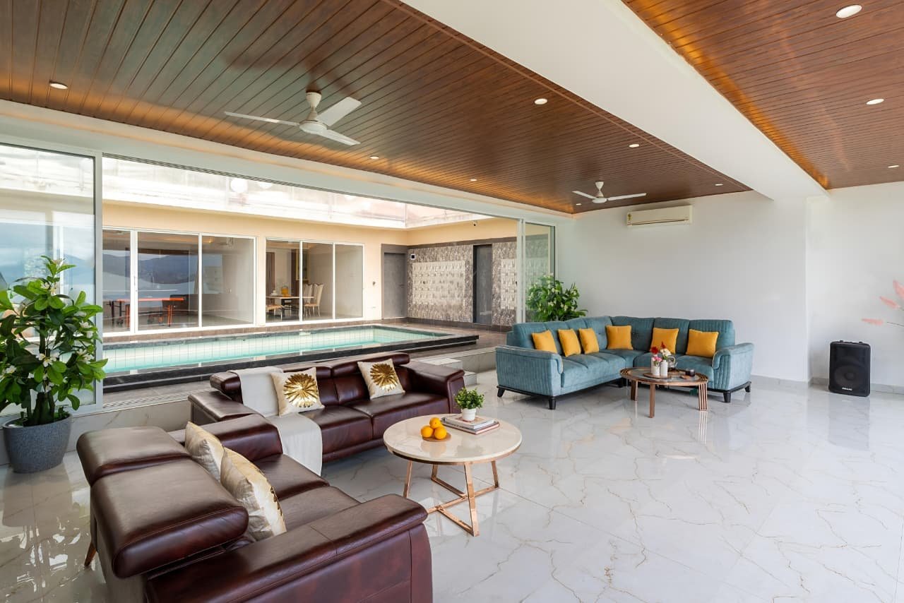 The villa’s layout ensures easy accessibility, open movement, and seamless indoor-outdoor connectivity. The spacious AC living room accommodates 10–15 guests comfortably and serves as a central gathering space.
