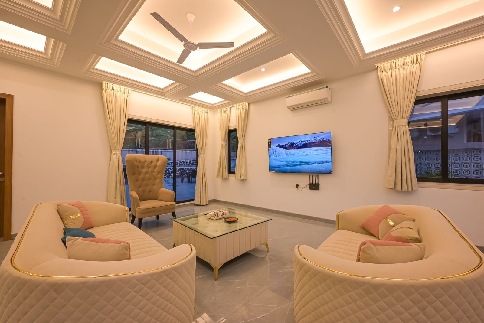 The villa is fully equipped with modern amenities such as Wi-Fi, LED Smart TV, geysers, refrigerator, and even a music system to keep the good vibes flowing. With private parking, 24-hour caretaker assistance, and spacious interiors, your stay will be smooth, secure, and unforgettable.