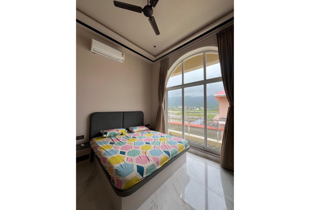 The villa also offers a terrace and balcony area where guests can relax with hill views and fresh air. Inside, you’ll find a smart LED TV, music system, dining area, and comfortable bedding. The caretaker stays nearby to assist you during your stay.