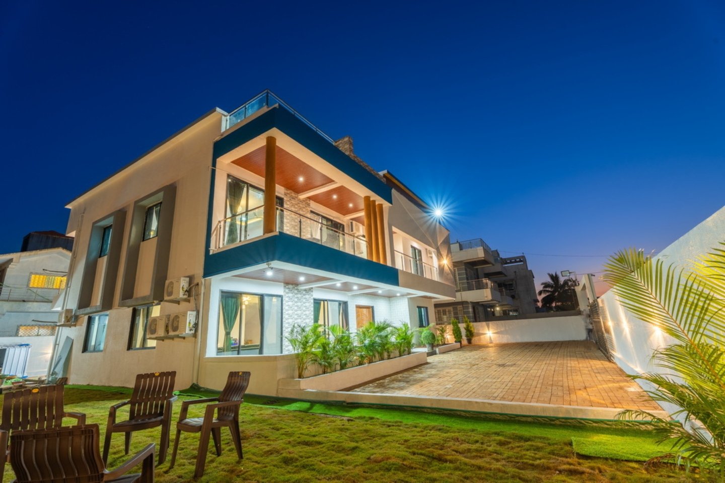 Outdoor fun is equally exciting with cricket and football play areas, while evenings can be spent enjoying barbeque sessions and music gatherings. The villa is perfect for large groups looking for a private yet luxury stay experience near Lonavala’s famous tourist spots.