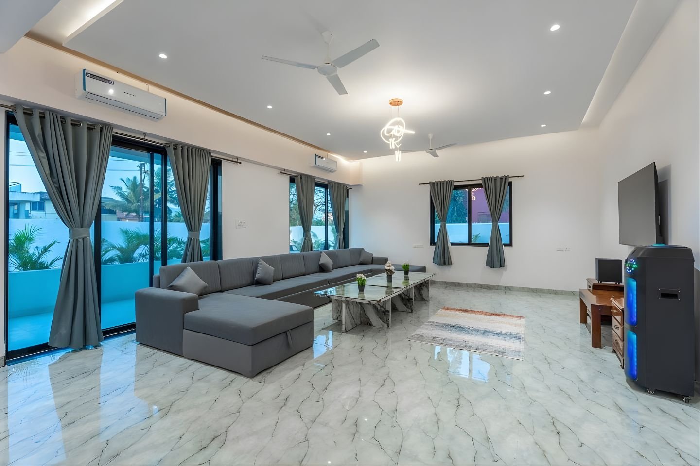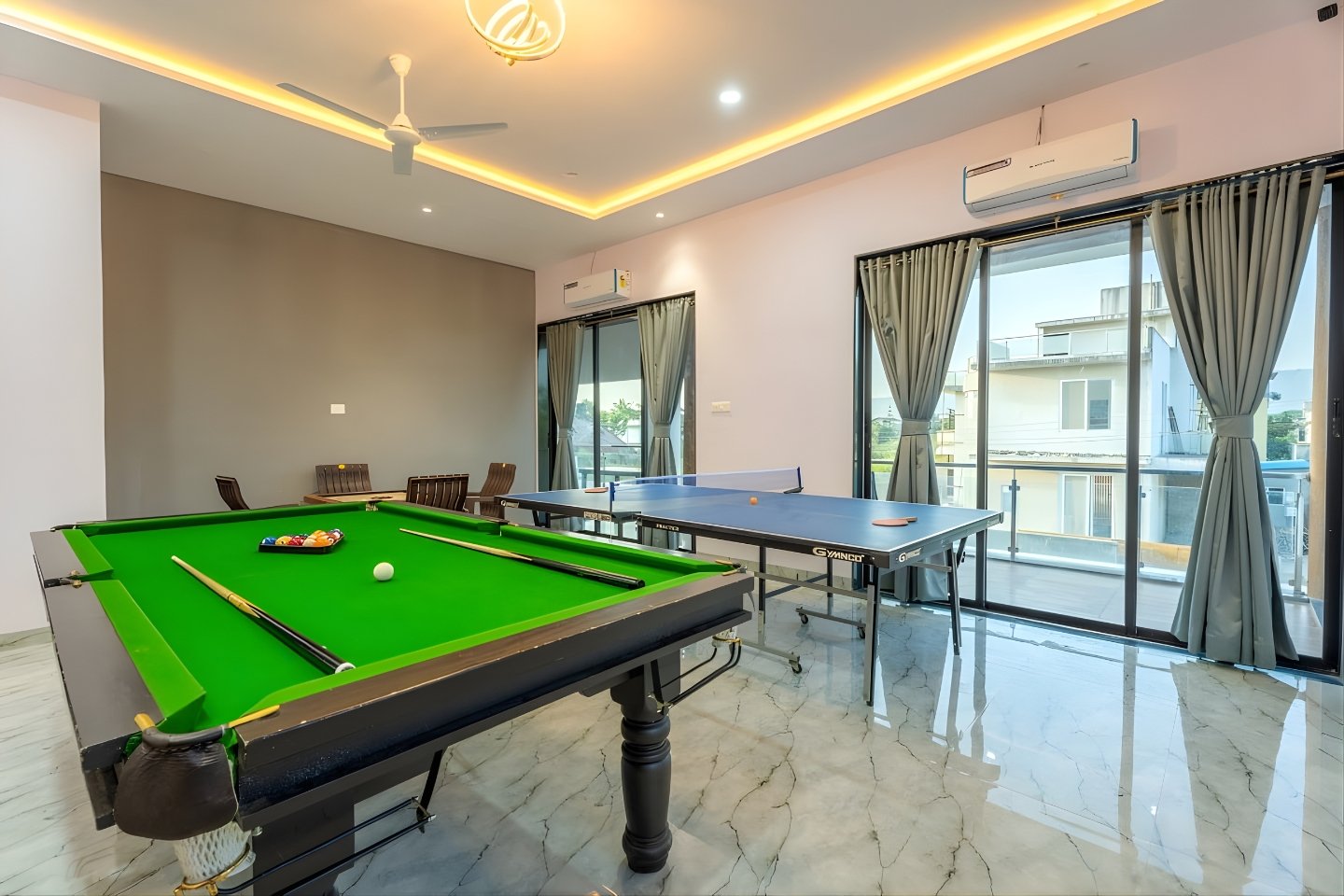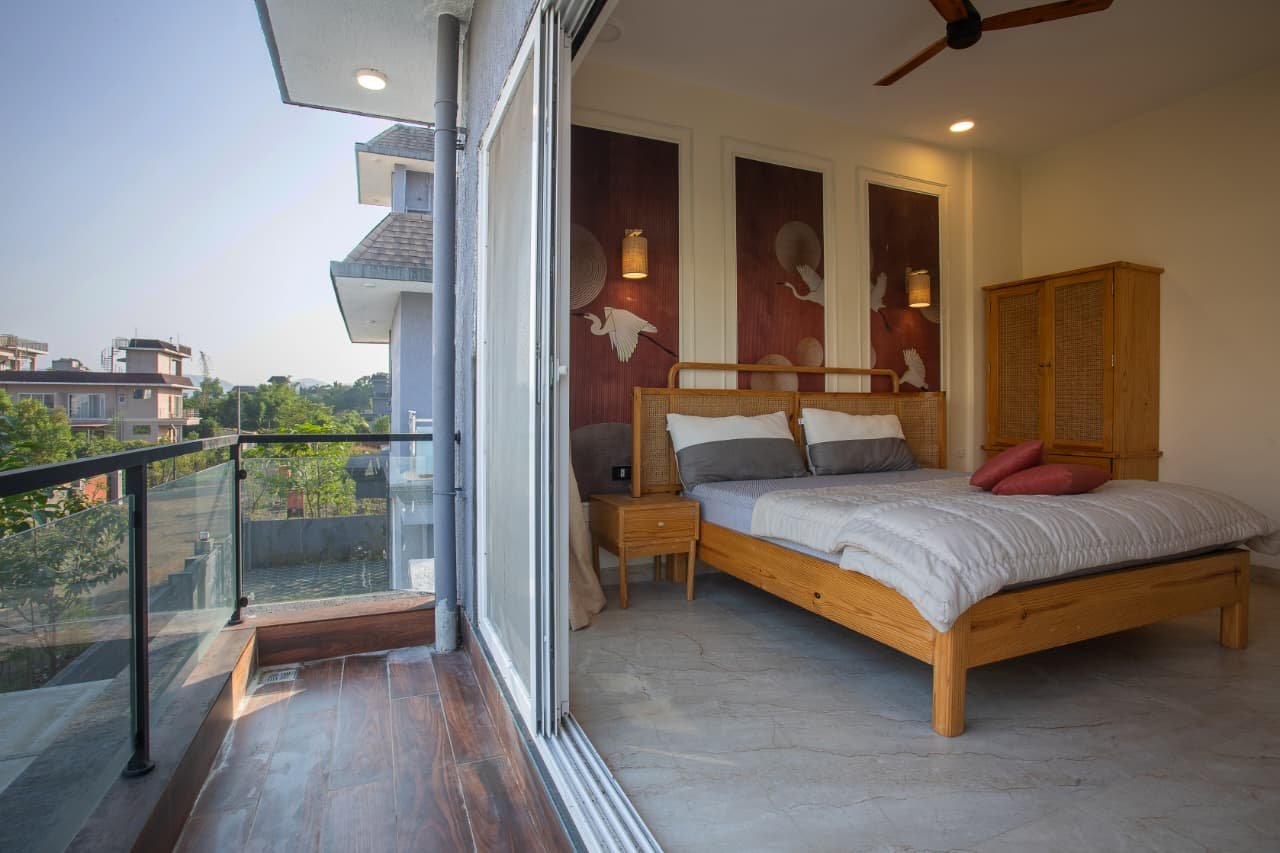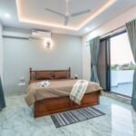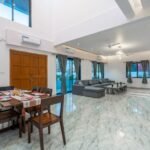The highlight of this 6bhk VILLA in Lonavala with Private pool and Pool table is its large private swimming pool along with a dedicated entertainment setup. Guests can enjoy indoor gaming sessions, music, movie nights on a big 65-inch Google TV with home theater, or simply relax in the balcony and open spaces.