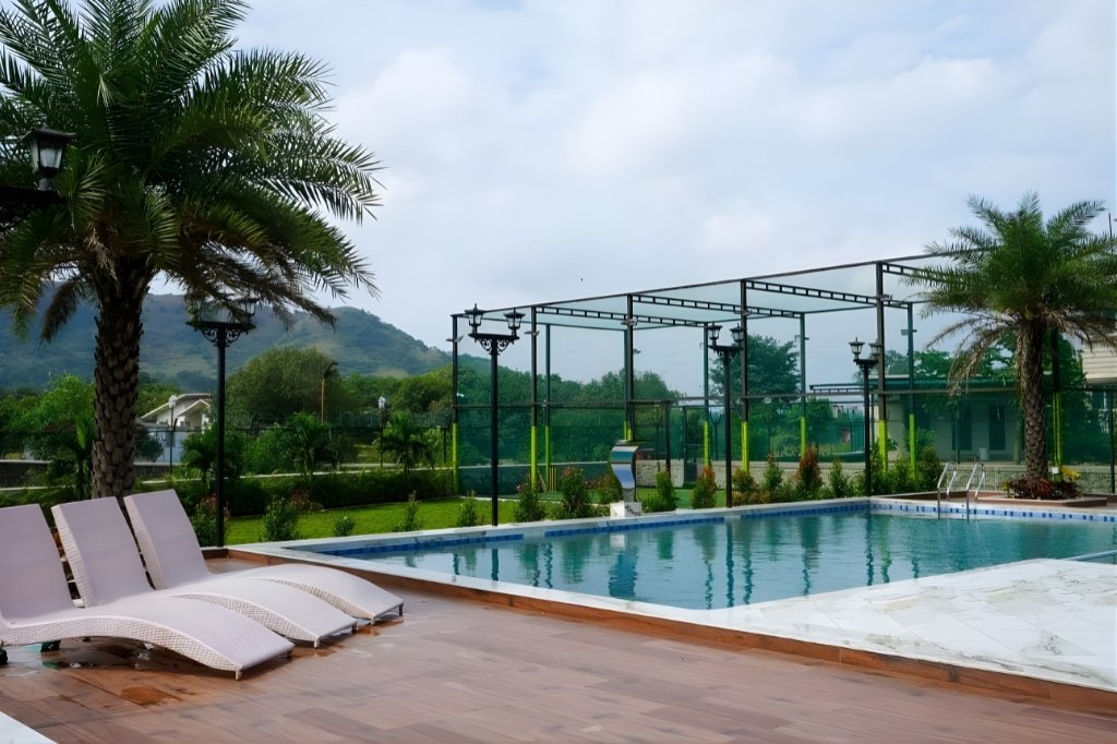 This 8bhk VILLA in Lonavala with Private pool and cricket turf is located close to the Mumbai-Pune Expressway, allowing easy access from both Mumbai and Pune. Despite its connectivity, the villa maintains privacy and calm surroundings ideal for weekend vacations.