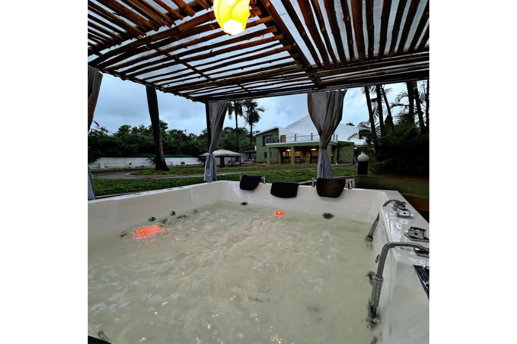 Yes — a beautifully designed 6-seater outdoor jacuzzi.